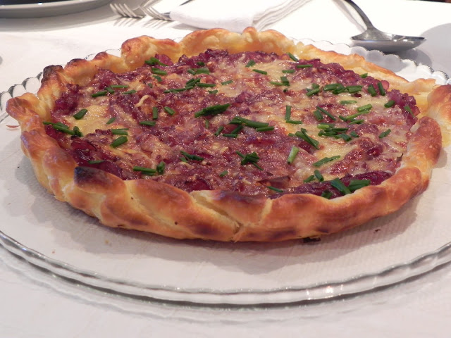 Para este domingo a escolha recaiu em quiche de bacon e azeitonas , torta folhada de queijo e fiambre, tarte de cebola vermelha e queijo da ilha, patê de atum e cebolinho, bolo de caramelo, tarte tatin. E a acompanhar chá. Chá preto de violetas. Que descobri recentemente. E que aderi de imediato. Pelo meu gosto incondicional ao chá.