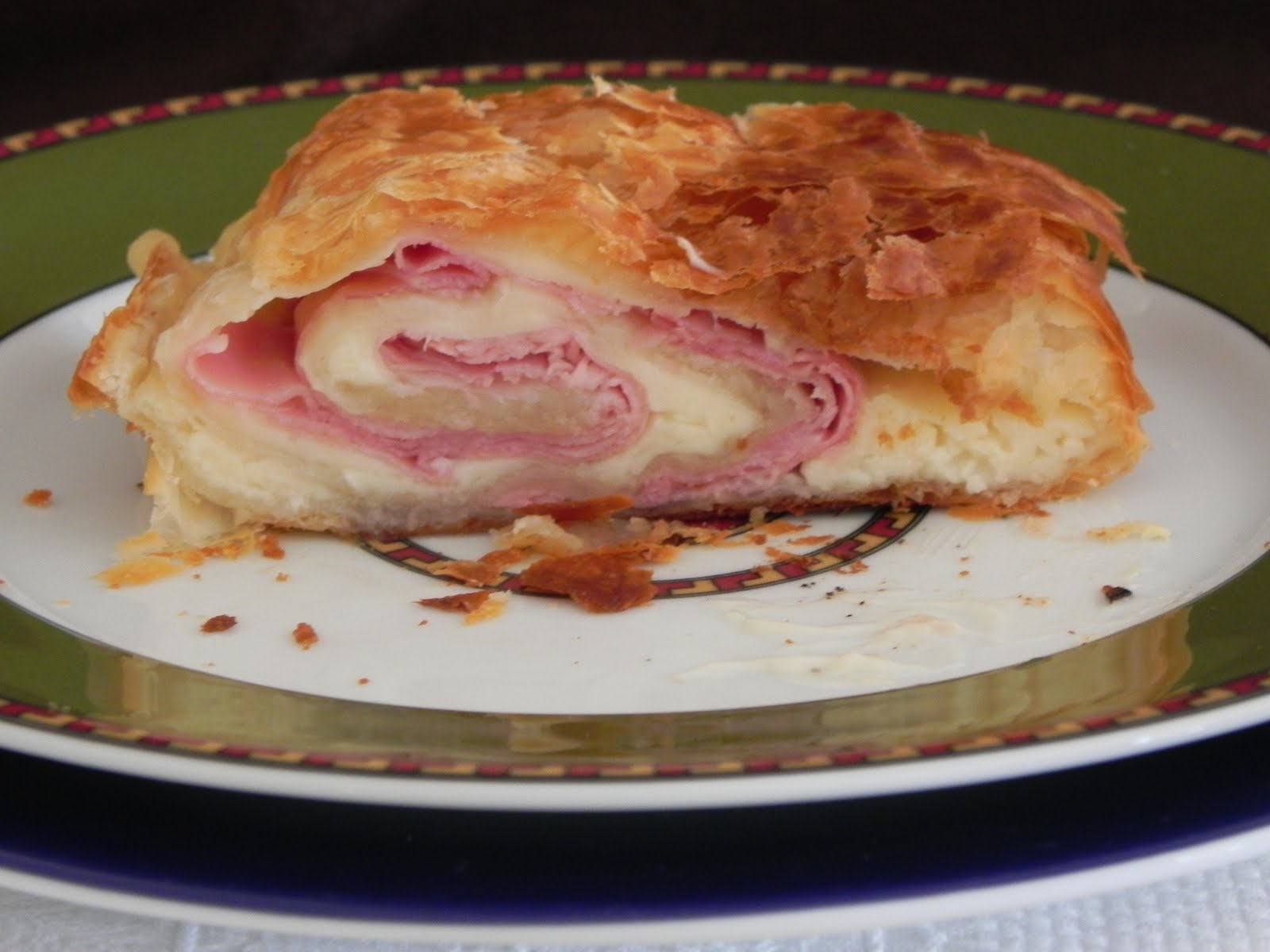 Mais uma vez uma receita muito fácil e muito rápida. Sem grandes complicações. Uma receita que foi feita num daqueles dias em que a hora do jantar se aproximava a passos largos. E a necessidade de colocar algo na mesa para se comer, levou a isto, um folhado de queijo e fiambre. Pode servir como formula de abertura, ou como neste caso acompanhar uma sopa.