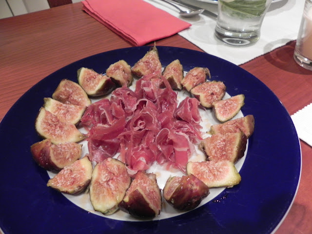 Uma entrada com o meu fruto preferido. Figos. Figos adoçados com um pingo de mel. E a contrastar com esta doçura o sabor intenso do presunto.