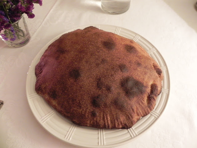 Primeiro deixar respirar a massa, depois coloca-se o queijo mozzarella, por cima o presunto, depois o tomate, temperar com o sal, mas com cuidado pois o presunto costuma ser salgado, e os orégãos e depois colocar por cima mais queijo. Cobrir com a segunda placa de massa de pizza, unir os extremos e levar ao forno durante 10 a 15 minutos.