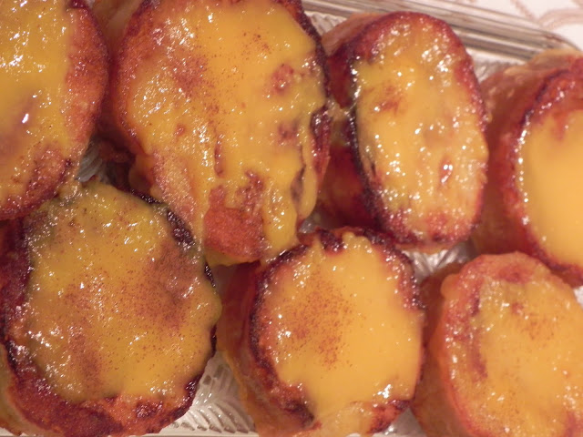 Quando o doce de ovos estiver morno cobrem-se as rabanadas e polvilha-se com canela.