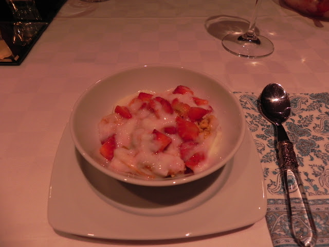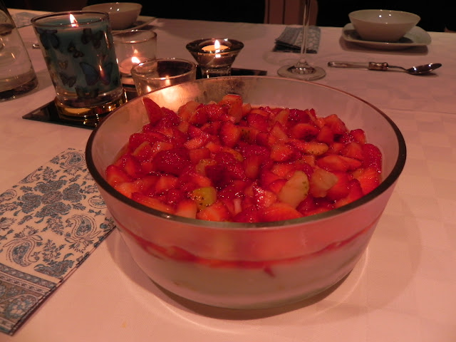 Com estes dias primaveris a fazer lembrar o verão, o sol, o calor e a luz começa a apetecer mais umas sobremesas frescas. Esta foi feita um pouco ao sabor da imaginação. Associar morangos a uma especie de leite creme. Feita com tempo e dedicação resultou numa sobremesa muito boa. Uma sobremesa que encerrau uma refeição luminosa. E é bom quando assim é.