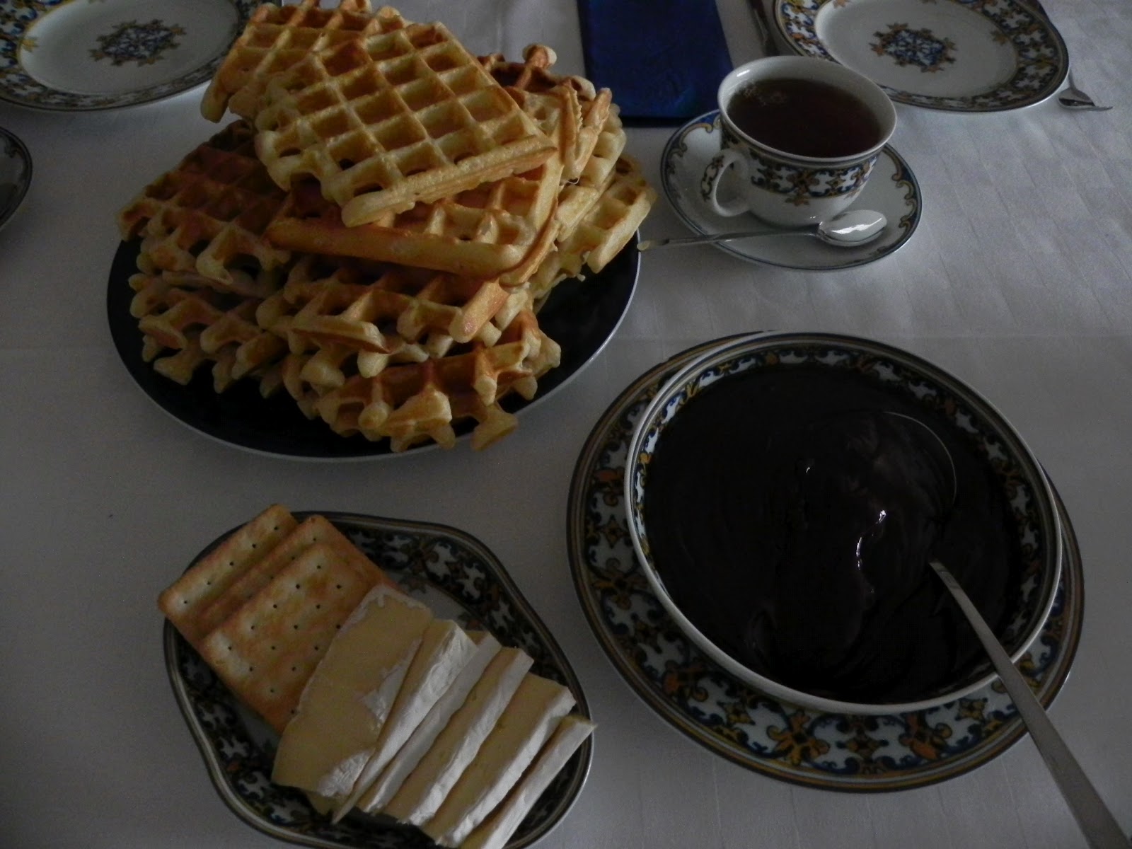 Num Domingo cansativo o Henrique pediu-me para o lanche uns waffles. E então para o desafiar disse-lhe que estava tão cansada que não conseguiria fazer fosse o que fosse. E resultou, prontamente se prontificou a preparar para o lanche os waffles. E então, sob a minha supervisão lá foi acrescentando os ingredientes até obter a massa. Depois foi só ligar a máquina e pacientemente fazer dois a dois. Entretanto o chocolate a derreter e o chá a fazer. E a pilha de waffles a crescer, uns mais tostados do que outros, para agradar a todos. Foi esta a primeira experiencia culinária do Henrique a demonstrar que a cozinha não o assusta. E eu a vê-lo assim, a crescer em todos os sentidos, e a sentir um imenso orgulho.