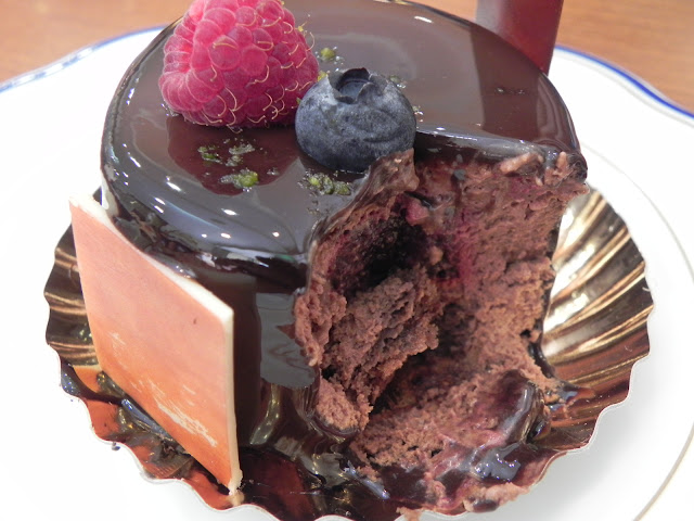 E quem passa, pára. Sempre. Sabendo que tem sempre à espera delicias às quais é sempre muito difícil de resistir. Como este semi-frio de chocolate e framboesa. Uma verdadeira delicia.